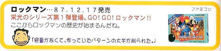 - ↑ 3,0 3,1 3,2 3,3 3,4 3,5 3,6 3,7 Mega Man Official Complete Works, MEGA MAN - Pág. 7