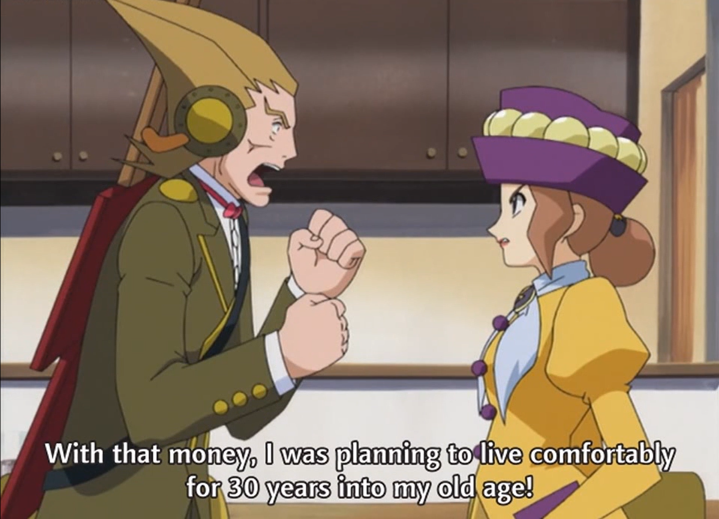 In the present, Ann searches for Jack having run out of money, and arrives off-screen at MaHa Niban in Jyawaii looking for him. Hinoken, figuring Ann would not make an effort to come look for him, told Ann where Jack was much to his distress. Jack tries to leave MaHa Ichiban quickly having learned that Ann was arriving, but before he could walk out the door, Ann enters. When Jack tells her he has no money, she electrocutes him a few times and angrily reminds him of how they met, and how he vowed to give her a stress free life, saying he showed her he can be a great evil-doer as a member of the WWW before telling him she has lost her patience. Jack snaps back and states she lives on overindulgence, spending his money as fast as he made it, and she snaps that no one could be satisfied with the amount he made. He argues he planned to retire with that money, and she spent it on things such as a “seven year trip to travel the world seven and a half times”, and she tells him because of him, she could only make it three times before zapping him again.
