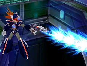 Copy Shot (コピーショット) is an attack from the Axl Bullet that allows him to use A-Trans. In Mega Man X7 it has a short charge time before firing, though this was removed and the size of the shot was reduced in Mega Man X8. If Axl destroys an enemy of his own size with a Copy Shot, they leave behind a DNA core that he can absorb to temporarily imitate their appearance and powers. In Mega Man X7, Axl is also able to harvest DNA cores from enemies much smaller than himself; instead of transforming, he temporarily gains a special enhancement.