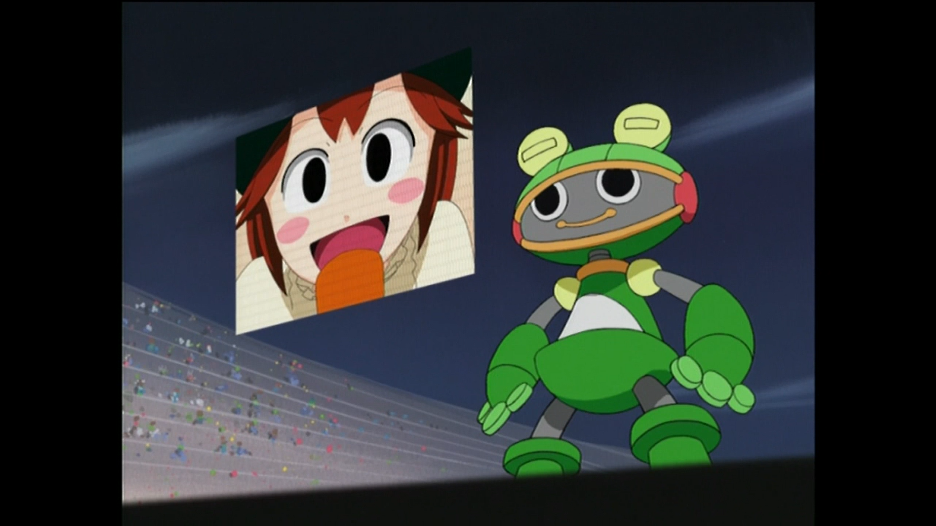 ToadMan makes a cameo doing the screen transitions for Ribbita's report on Gauss Magnus arriving in Japan. Electronic Money Panic!