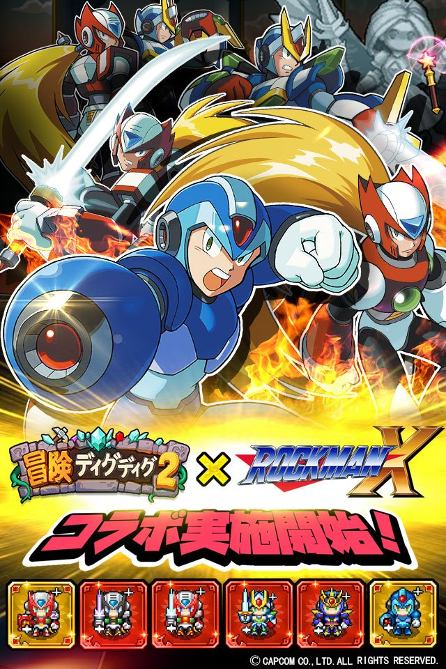 Bouken Dig Dig 2 (冒険ディグディグ2 "Adventure Dig Dig 2") is an adventure mining RPG released by Cool Factory for iOS and Android in Japan in 2017. It is a sequel to Bouken Dig Dig. In 2017 X and Zero appeared in the game as event characters available from September 25 to October 24.[1][2] The game's service ended on August 31, 2022.