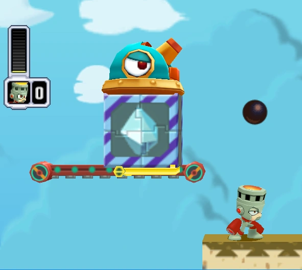 Cannons are named Shield Cannons (ホウダイン "Houdai'n" in Japan) and now have eyes and different colors, but their pattern remains the same. They only appear in Challenge mode stages, and stages created with the Construction Mode.