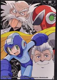 | A postcard with Mega Man, Proto Man, Dr. Light and Dr. Wily. | |