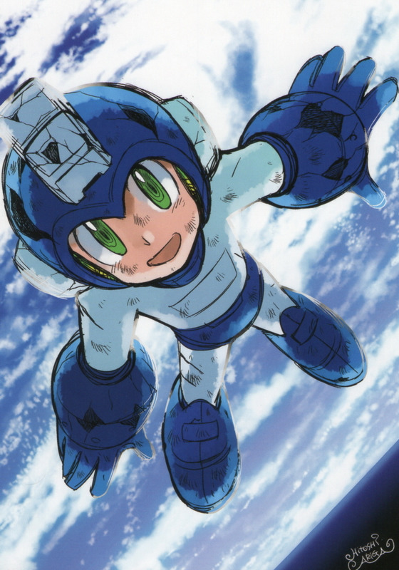 Postcards and bookmarks with color illustrations by Hitoshi Ariga that came with the 2009 and later releases of the manga Rockman Megamix, Rockman Gigamix and Rockman Maniax for a limited time for people that pre-ordered them from the sites e-Capcom, Fukkan and Tanomi, each with a different postcard/bookmark. Later, other Rockman manga and books also included postcards from different artists.
