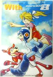 | Rockman 7 has two postcards, one with Mega Man, Rush, Auto, Beat, and Eddie, and the other with Super Mega Man, Bass and the Wily Capsule. The Rockman 8 manga comes with a postcard with Mega Man, Roll and Rush. | |