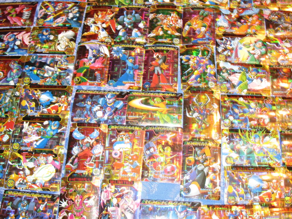 Several Rockman 7 and Rockman X: Mega Mission Carddass.