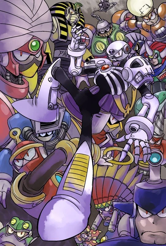 | Postcard with the 16 Wily Numbers from Rockman 3 and 7, with Turbo Man highlighted. | |