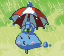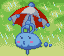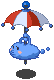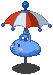 Cloudy2 is a blue cloud with a white and red umbrella. |
