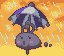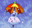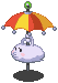 Cloudy3 is a black cloud with a white and purple umbrella. |