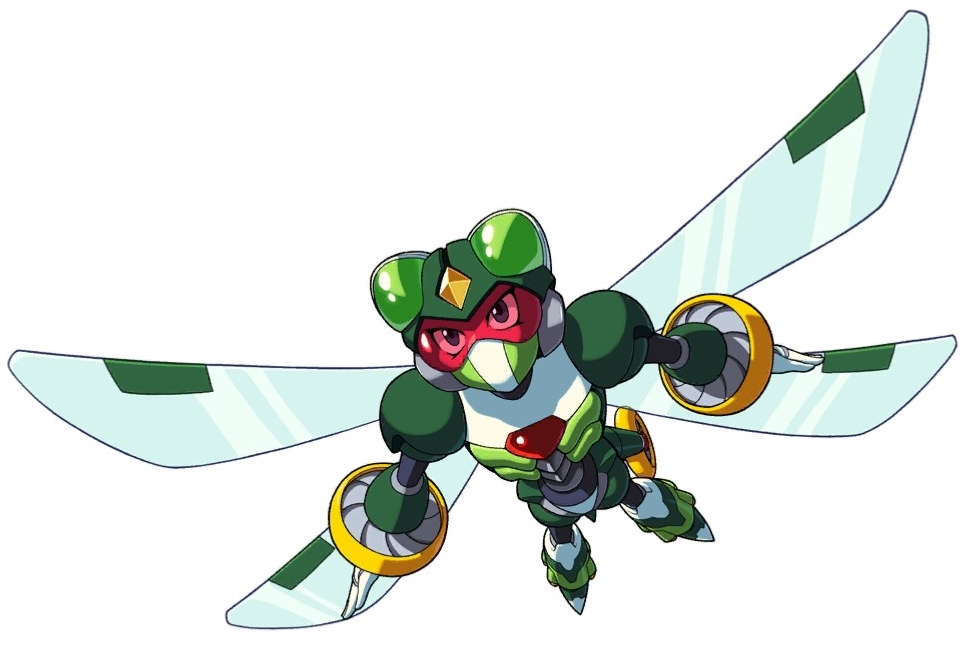 Commander Yammark was originally created by Gate to support forest preservation projects, becoming the leader of an ecological observation team. In order to ensure the most thorough investigations, he is equipped with the Yammar Option, independent dragonfly Mechaniloids that act as his eyes and ears. While on duty he once accidentally set a fire that burned a large portion of a forest due to control disorder. He wasn't accused of the incident, but some time later, someone sabotaged his flight system, leading to a crash that killed him.