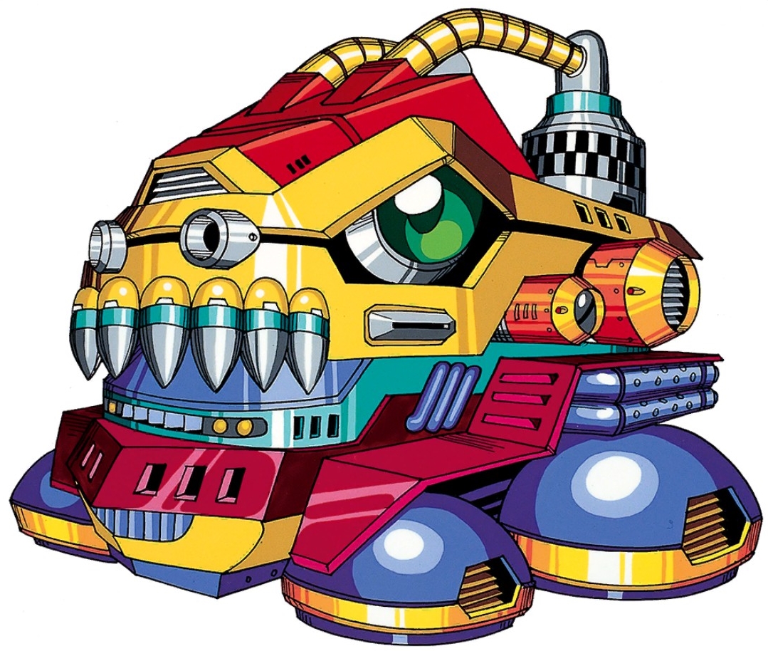 D-Rex's top half can detach from the bottom, hovering in the air, and both try to crush and seriously damage X. The bottom can be stood upon, but if X stands there for too long the top will try to crush him. When either section collides with a wall, it can daze X and knock him off. Both sections can also charge up massive electron spheres and fire them. Its main weakness is the Boomerang Cutter.