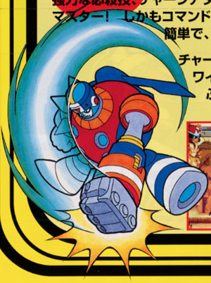 In Mega Man 2: The Power Fighters, Duo has the ability to copy Special Weapons like Mega Man, Proto Man, and Bass. This ability is guessed to have been given to him by Dr. Light. His charge attack (Up + Shot with charged energy) is Giant Knuckle, where he gives the opponent a strong uppercut, follows by jumping near the opponent (Jump + Shot) and hitting again (Shot) in the air, making the target fall on the ground.