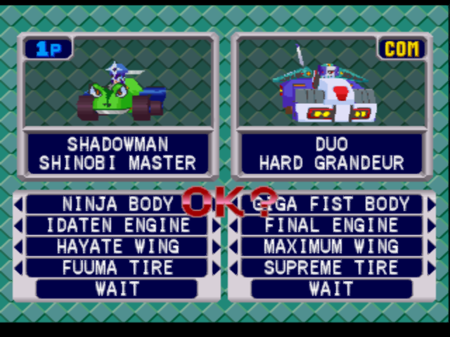 As Duo isn't present in the Grand Prix Mode, the Hard Grandeur parts can't be obtained, and they can't be combined with other car parts even with cheats, apparently not being programmed to be compatible with them. There is no information of what each part does, besides the basic of each body being responsible for the two attacks, each engine for speed, and tires for terrain effects. The Maximum Wing presumably affects the speed.