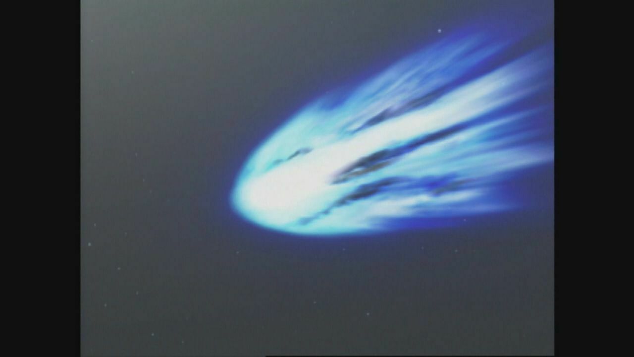 During a quiet night in Densan City, an old man is seen collecting garbage and putting them in his trolley though it is appears to be highly technological as it was equipped with mechanical arm and rockets. Meanwhile, at the Space Observation Center, Dr. Hikari and the NetSaviors was called upon the discovery of a comet. According to the head astronomer, this comet had passed by Earth 15 years ago. Although the scientists in the Observation Center failed to detect anything irregular about the comet, Dr. Hikari knows that the Comet belongs to Duo, signaling Duo's return. Dr. Hikari hopes that the comet will pass by Earth without troubles this time as the world is still suffering from the aftermath of Dr. Regal’s attack not too long ago.