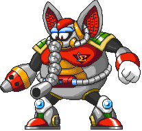 During the battle, Flame Mammoth kept repairing himself whenever X destroyed, giving X a hard fight. However, after shooting Flame Mammoth with a series of buster shots, X noticed that Flame Mammoth's left chest (where the Sigma insignia was located) was so resilient that it was immune to attack and reflects buster shot upon contact. X then decided to take the gambit by letting his buster to merge with Flame Mammoth during his regeneration. By doing so, X was able to shoot directly at Flame Mammoth's weakness, destroying the Maverick's regeneration function. Flame Mammoth's gigantic body then began to collapse, revealing his true form — a small CPU ball with arms and legs.