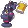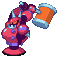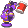 Gaia have purple colored body with yellow decorations. They also bear a red hammer over their head.