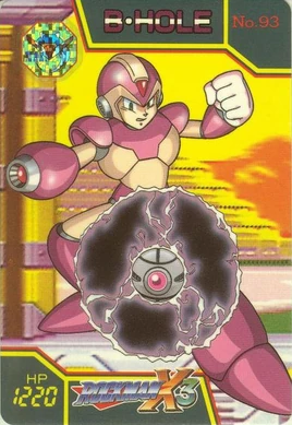 Gravity Well, known as Bug Hole (バグホール Bagu Hōru) in Japan, is the Special Weapon that X obtains from Gravity Beetle in Mega Man X3. With this weapon equipped, X has a pink and pale yellow variation of his usual armor, and can release a floating ball in front of him that creates a high-gravity zone. Surrounding enemies are crushed by the gravitational force of the ball. These balls are grey with a dark purple spherical aura in their vicinity. When charged, X releases a Gravity Well upward, only this time with a black hole generated. Once in the sky, it lifts enemies up towards it. Gravity Wells will stop working a few seconds following their deployment.