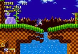 Sonic in Act 1 of the original Green Hill Zone.