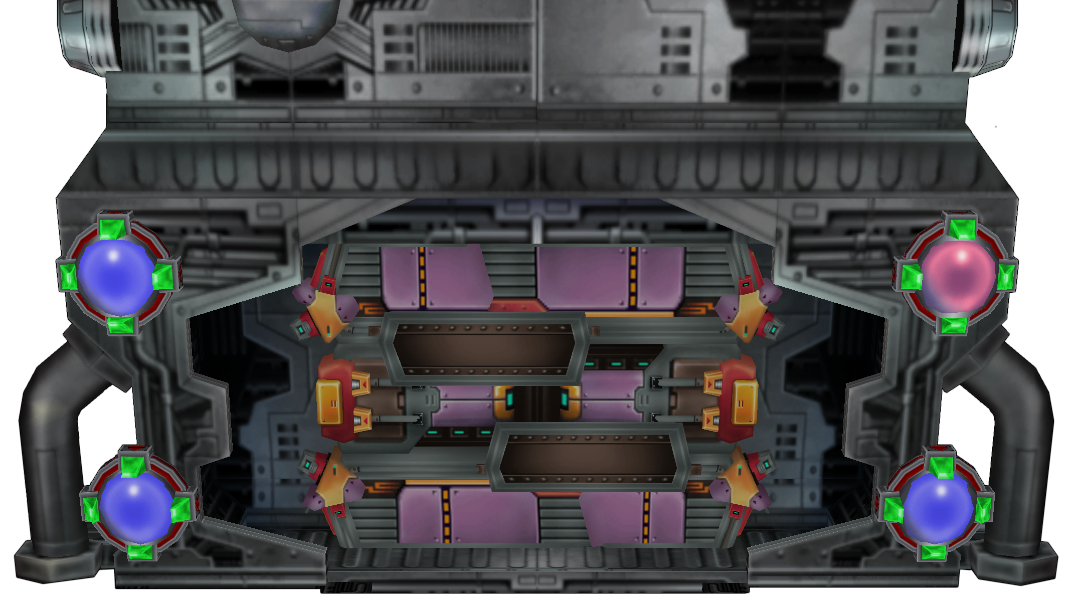 Guard Door (ガードドア Gādo Doa) is the first mid-boss of the Opening Stage from Mega Man X7. It is a security door with four blue crystals, one of which becomes red before the four orbs fire at Axl. Possessing a puzzle element, to open the door, Axl must shoot a red crystal three times in succession. If the wrong cores are shot before the door is completely open, the door closes again.