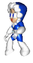 Ice Man was originally created by Dr. Light to scout the continent of Antarctica, but having finished his mission there, Ice Man returned and is now working in a large cold storage warehouse. In order to function in harsh environments and extremely cold temperatures, Ice Man's internal circuits are made up of the smallest components available. These small components allow Ice Man to function with the least amount of energy possible, and they are also the reason for his physical form being smaller than usual. The only disadvantage of using these smaller components is their hyperconductivity, and a strong electrical surge like Elec Man's Thunder Beam will easily incapacitate him. Despite his small stature, Ice Man is quite effective in combat.