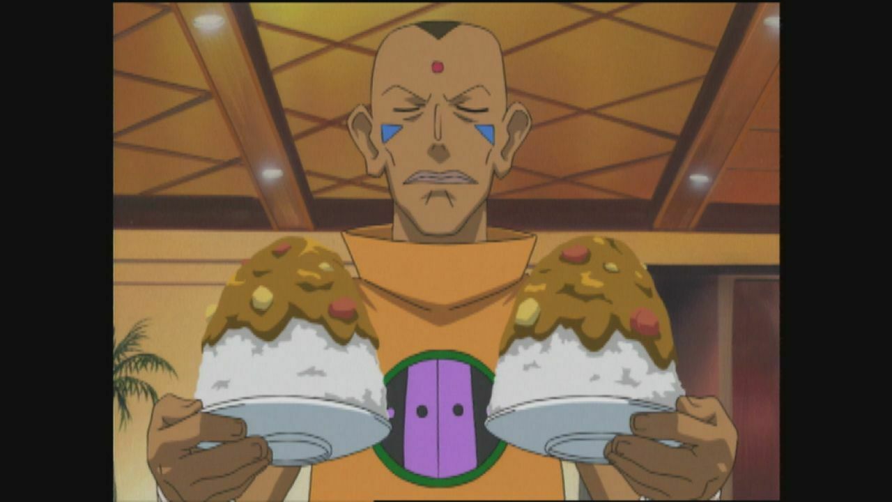 They approach Narcy and plug in their respective navis, but Videoman creates copies of them. The three fight against their copies, but get confused as they can’t figure out which ones are the copies and the real ones. Dekao gives them a plan, and Gutsman crushes the copy. Working together, they defeat Videoman and stop Narcy’s plan. However, Narcy jumps out of the ship with a wing backpack and flies off. The group, unfortunately, does not know how to pilot the ship and crashes directly into Maha Niban. The remaining curry spills over the shop, and Maha Jarama praises Dekao’s improvement.