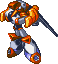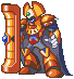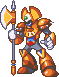 The main antagonist of Mega Man & Bass . Which his shield destroyed, King can be attacked. Attacks with an axe and occasionally fires a laser beam from his forehead.