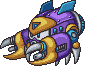 A large crab-like sub-boss in Burst Man's stage and Wily Castle 3. Attacks with energy shots and bubbles. When its health gets low, it will attempt to ram into Mega Man.