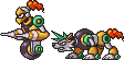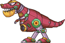 A large robot modeled off of a stegosaurus, native to Slash Man's stage. It attacks by firing its dermal plates in an arc, withdrawing its head and tail, extending them out of opposite ends to face away from Mega Man, then firing homing missiles from its back. The weak point is its head.