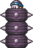 A stack of tires with an orb-like enemy in them. It shoots off tires at Mega Man, and if all are spent or destroyed, the orb will hop at Mega Man until it is also destroyed.