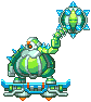 Pantheon Base (パンテオン・ベース) is a green rotund Pantheon from the Snowy Plains, Glacier le Cactank's stage. It attacks with a flail hammer on its left arm and rides a sled-like hovercraft. Zero can also use its hovercraft after destroying it. Respectively, they look and attack like Cactank, and only appear in the Snowy Plains, implying they might be his own personal Pantheon guards.