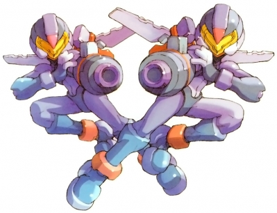 Pantheon Ace (パンテオン・エース) is a pair of flying Pantheon mid-bosses. They are the first of three bosses Zero must face in the Neo Arcadia Shrine stage, first appearing as statues. They are slightly faster and more lethal versions of the Pantheon Flyers, and look like the Variant forces in Mega Man Zero 4. The only real danger during the fight is the spiked pit in the center of the room. They are the only kind of Pantheon seen with visors instead of one singular eye.