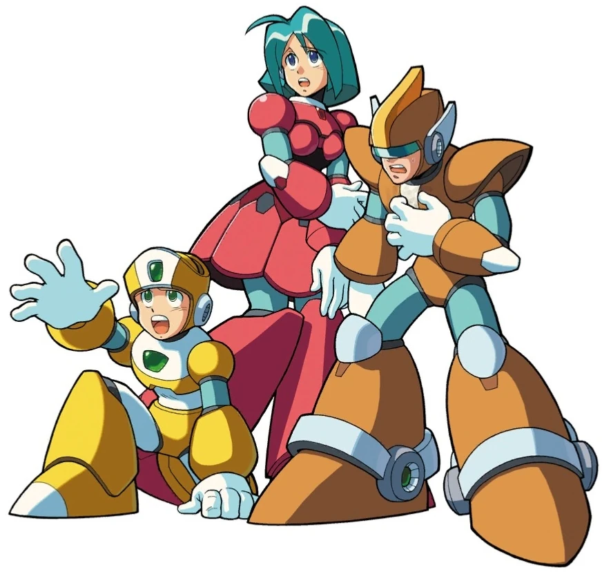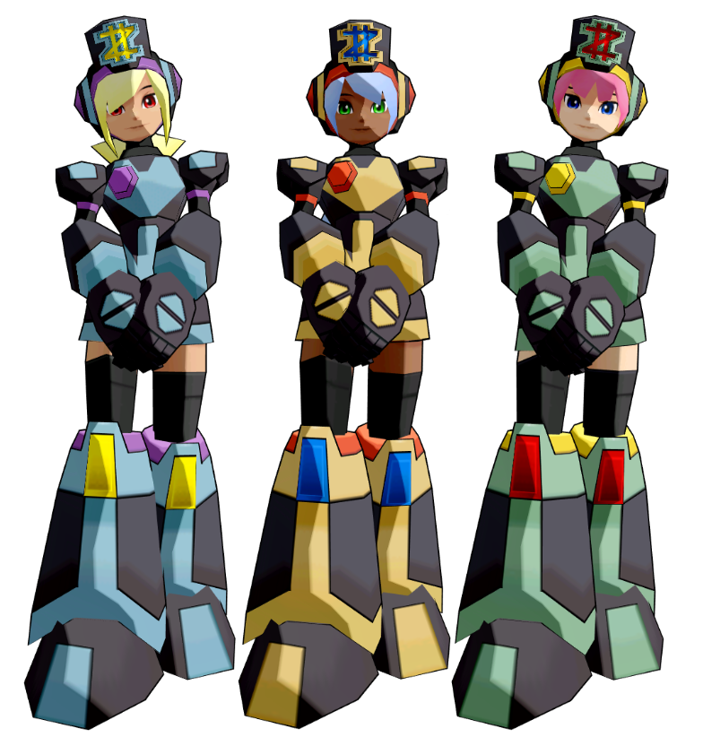 Unnamed mass-produced Reploid navigators from Mega Man Maverick Hunter X and The Day of Σ. The pink-haired female is a superior version, so there are fewer of her type compared to the blue-haired female model.[3] There is also a male model that seems to be based on the generic Hunter model but with lighter colors.