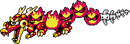Magma Man Stage takes place in some kind of fortress or factory that has lava in just about every place, which makes it a hazardous stage that Mega Man must traverse, and there is one main gimmick, the "Magma Beams" that will fire a large beam of magma in patterns either down or sideways that will instantly kill Mega Man, though they can be hardened by Concrete Shot and only then can they also be destroyed by Laser Trident. Mega Man will start by dodging Popo Helis and Jump Rollers over lava before being introduced to the Magma Beams. He will go through a fairly large section of them and then fight the Changkey Dragon sub-boss. This sub-boss will fly in a wavy pattern across the screen while firing down at least 3 large Changkeys down on the ground that will dash towards Mega Man while leaving another large fire from where it was fired, though all of the Changkeys on the ground and on the Changkey Dragon's back can be sucked in by the Black Hole Bomb. After beating it, Mega Man will go through a small section filled with Fire Totems before going into the much larger section of Magma Beams ad making it to the boss door soon after.