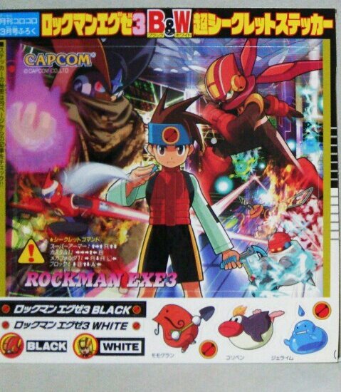 - While the Japanese release of White Version is officially without a subtitle, the March 2003 issue of Monthly CoroCoro Comic has a sticker sheet calling it "Rockman EXE3 WHITE" (ロックマンエグゼ3 ホワイト Rokkuman Eguze Surī Howaito). It has also been distinguished as “White” by director Masahiro Yasuma[16] and Capcom-Unity’s Ucchy[17].