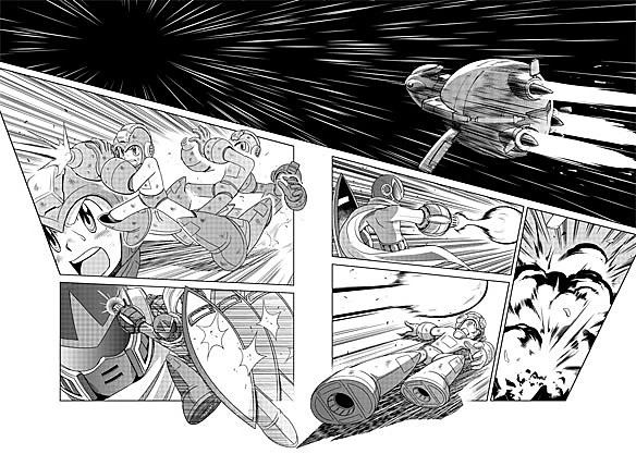 Asteroid Blues (アステロイドブルース Asuteroido Burūsu) is a story from volume 1 based on the events of Mega Man 3, taking place between the stories "R Destruction Order" and "Metal Heart" from Mega Man Megamix.