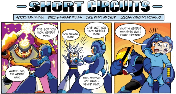 Mega Man mistakes a couple of the new Robot Masters for Needle Man.
