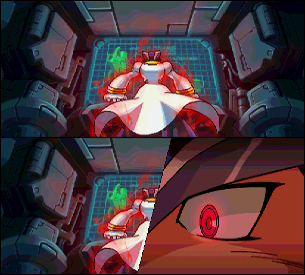 Gate: Bwah ha ha ha! It's finally done!! I'm going mad and it is so... liberating! ...no. The plan has only just begun... I'm going to bring all low-grade... Reploids into submission! Those too simple to understand my work!! I'll build an ideal world only for Reploids... A wonderful world where I control everything!