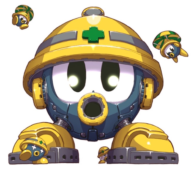 - A familiar foe in the Mega Man series, noteworthy for the yellow helmet covering its whole body, which looks rather like the hard hats you see on construction sites. You can't hurt it until its face emerges from under the helmet, so watch for your chance to strike. Similar foes include the Cactuspy and the slippery New Met.
