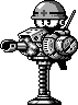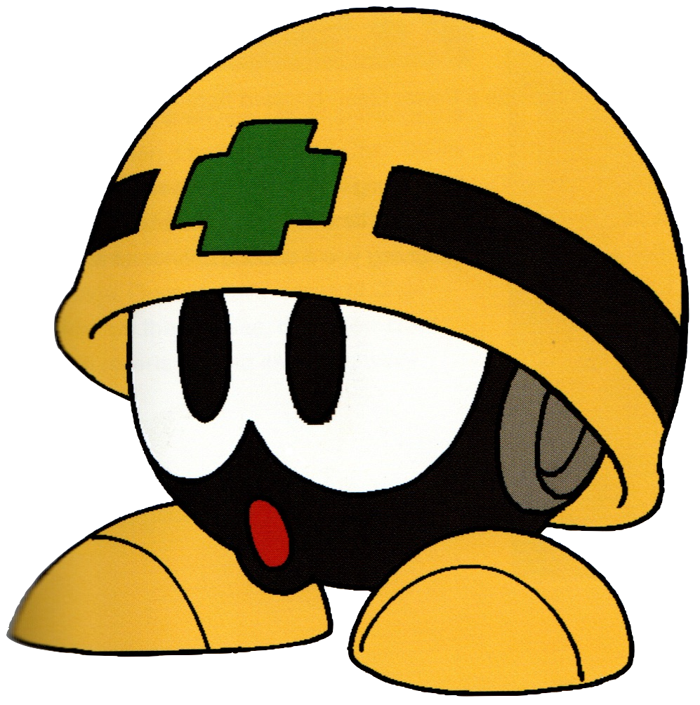 The Metall (メットール Mettōru), often called "Met", is an industrial robot created to supervise works. Mets appear in Guts Man's stage and sits on the floor hidden in its indestructible helmet, and when someone gets close it lifts its helmet and shoots three diverging bullets.