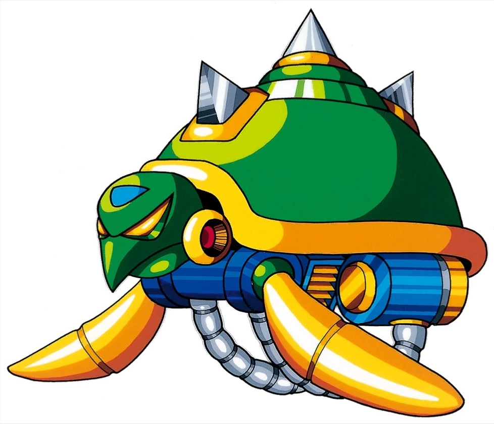 Mine Tortoise (マイントータス Maintōtasu) is a turtle enemy from Mega Man X3 that appears in Toxic Seahorse's stage and stages 1 and 2 of Doppler's lab. They float about lazily until X gets near, then they will pick up the pace and try to collide with him, their main body exploding on impact; yet leaving the shell intact. The shell will then float upward, exploding if it makes contact with a ceiling, sometimes dropping an item. The dislodged shell is impervious to all attacks except the Tornado Fang until it hits a ceiling or leaves the screen. If it reaches the surface of the water, it will simply float. A Mine Tortoise will always leave its shell behind when defeated by any weapon, but Gravity Well will destroy it completely.