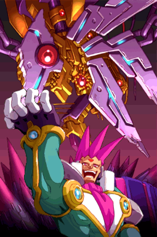 To further facilitate Model W's growth, Albert orchestrated the Game of Destiny.[6] The first step was forming the Sage Trinity and enacting equity laws, allowing him to survey every Reploid and Humanoid and to infuse his DNA in those he found worthy to be Mega Men.[7][8] The second step was creating two sibling Reploids: Prometheus and Pandora. After merging them permanently with Model W fragments, Albert commanded them to enlist his Mega Men to serve Model W in the Game of Destiny, under the premise of determining the strongest Mega Man.[9]