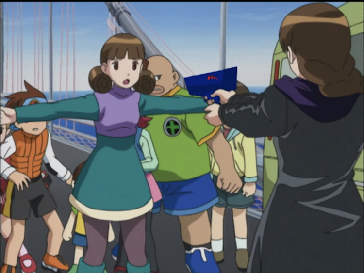 While Yuri is on the run from Misaki, she encounters Ms. Mari and uses her as a hostage. Later, Ms. Mari reveals about her sister, Yuri, who died 15 years ago. Afterwards, Ms. Mari travels with Lan and company. While on a bridge, they become encapsulated in a D-Area. Somehow SpikeMan has also materialized and attacks Ms. Mari. Lan Cross Fuses and fights SpikeMan, but...[1]