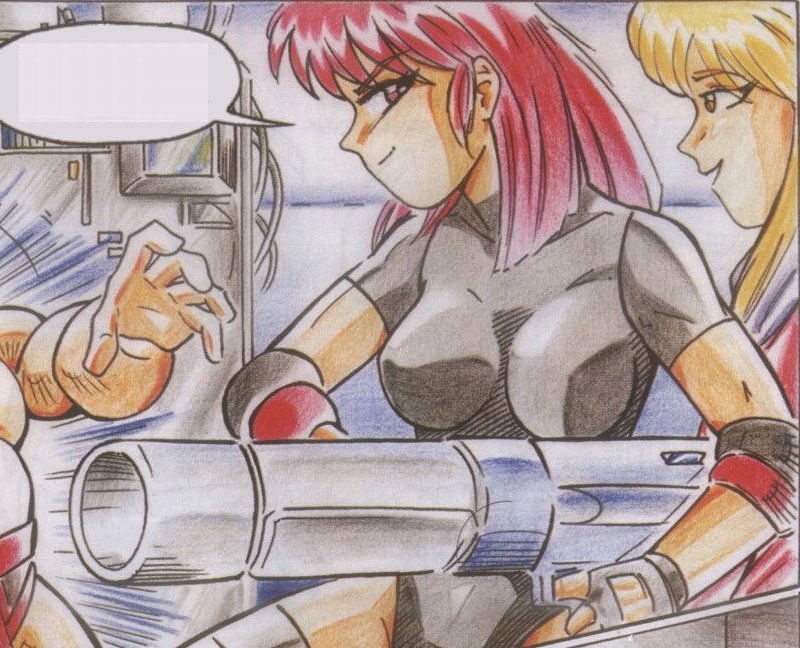 Despite showing no built-in weapons system such as the Mega Buster, Nástenka shows herself to be competent in battle, displaying incredible speed, agility, skill, reflexes, and strength. For a time she makes use of a gigantic gun taken from one of the massive robot guards of Dr. Wily's ally Mr. Holzenbein.