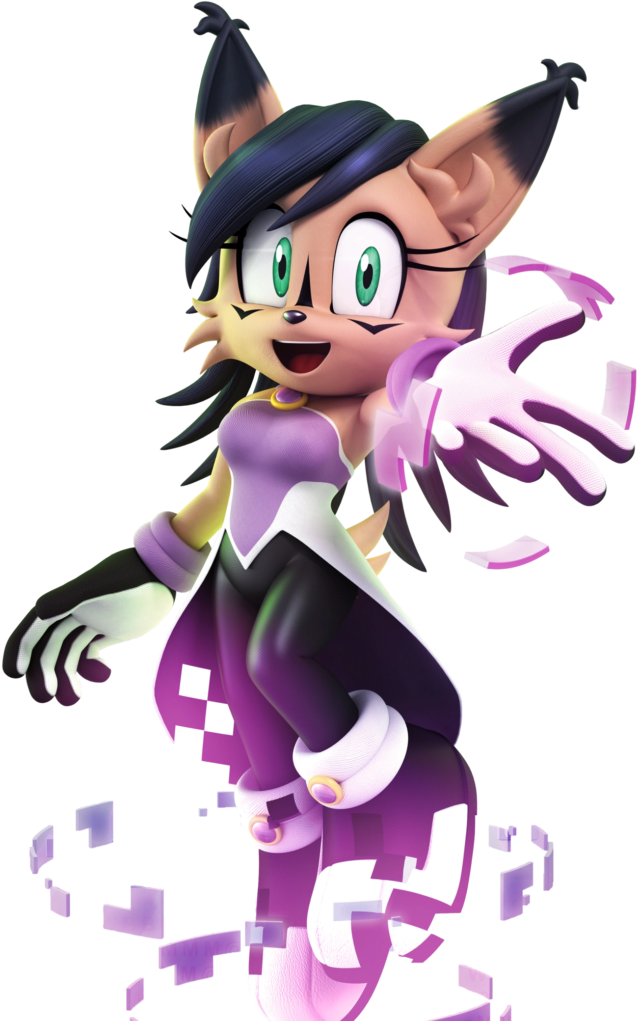 Nicole-sometimes referred to as NICOLE is a portable computer that developed a sentient mind with a feminine personality, and created a holographic body of an anthropomorphic lynx. She hails from the world of Sonic the Hedgehog, where she-like him and her close friend Sally Acorn-are members of the Freedom Fighters.