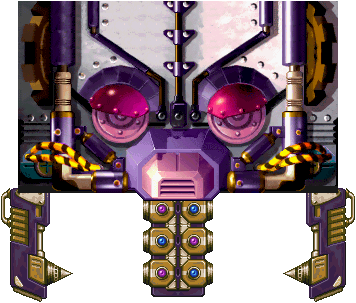This mid-boss is considered to be one of the most annoying in the whole X series as there are six such enemies to destroy throughout the stage in which the player has to destroy five of to reach the stage boss. It is also worth noting that on Easy Mode, this mid-boss does not shoot its projectiles from its cores. Just prior to the boss fight, X reports seeing it and claims it was a Mechaniloid, although Alia notes that it isn't emitting a data signal, causing X to wonder whether it was actually a Nightmare and wondering who created it.