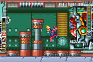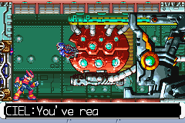 Ciel asked Zero to destroy Neo Arcadia's transport train to disrupt its supply and rescue Totten, a Cyber-elf that was stolen from the Resistance. Zero fights against the Pantheon Core inside the train's engine chamber, having a limited time (less then 3 minutes) to destroy it before the train arrives to its destination. It can only be damaged on the Pantheon head, which is weak to Thunder attacks.