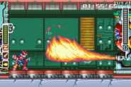 | EX Skill: Brain Pressure (ブレインプレッシャー) | The Pantheon Core opens all spikes from the ceiling and will slowly move forward to reduce Zero's space while it's attacking with the flamethrower and 1 or 2 of the floor segments go up, depending of Zero's position. | It does this twice, each time covering one of the pistons. |