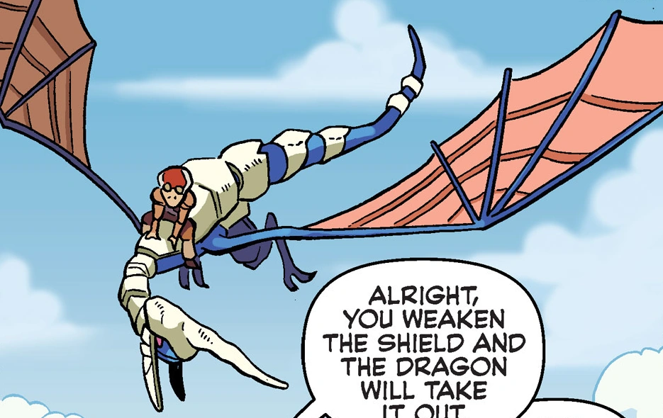 In the first Panzer Dragoon game, the dragon rider Kyle Fluge (named Keil Fluge in the crossover) rides the Blue Dragon to prevent the Prototype Dragon and its rider from arriving at the Tower, the ultimate weapon of the Ancient Age, after the Blue Dragon's original rider is killed pursuing it. The locale from the first stage in the game appears in the Archie Comics crossover Worlds Unite.