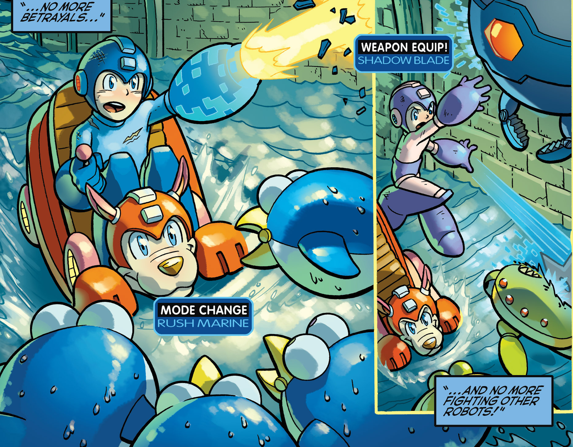 | Mega Buster | Needle Cannon | Magnet Missile | Gemini Laser | Hard Knuckle | Top Spin | Search Snake | Spark Shock | Shadow Blade | |||