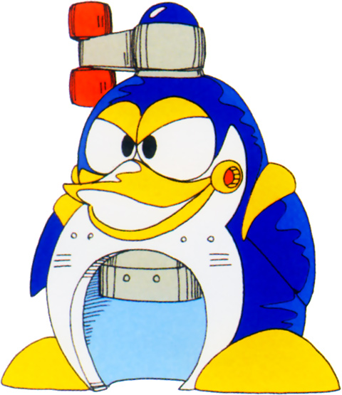 Penpen (ペンペン Penpen) is a small amphibious penguin-like robot from the Mega Man series that was originally created to collect meteorological data in the Antarctic. It appears as an enemy in Gemini Man's stage (before Doc Robot) in Mega Man 3 and Mega Man III, where they come out from Penpen Makers slipping forward at high speed. They are also found in the water area of the first Wily Castle stage in Mega Man 3, where they move up and down until Mega Man gets close - then they swim toward him.